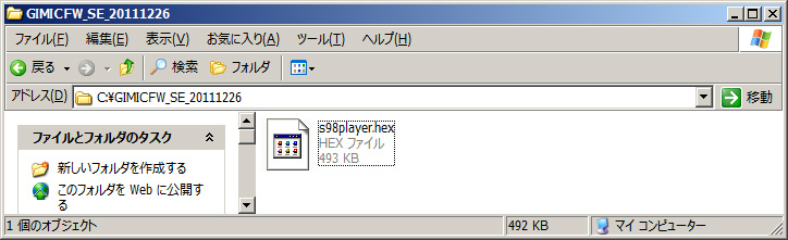 ③hexファイルをGimicUpdaterがあるフォルダに移動します。