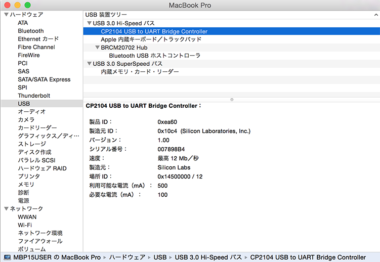 USB接続は左上Appleアイコンをクリック「このMacについて」→「システムレポート」を開き
