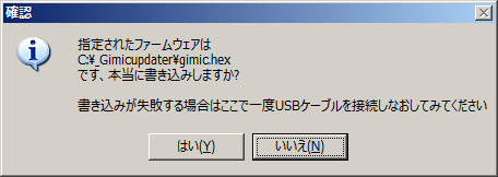 ⑧書き込むファームが間違い無いか確認し「はい」をクリックします。
