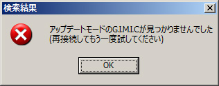 GIMICが見つからないと表示された場合はUSBケーブルやスイッチを見直して再度自動判定ボタンをクリックして下さい。