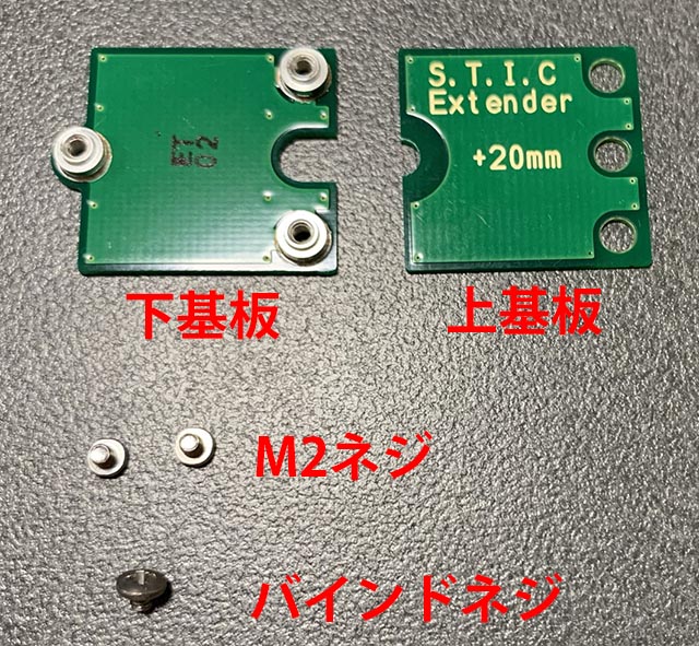2.上基板を写真の向きで下基板に重ね、M2ネジで軽く取り付けます。(後で微調整する為)