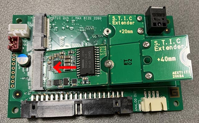 STIC Extenderが外れないように、モジュールを持って取り付けて下さい。