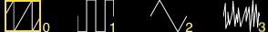 OPNのハードウェアLFOは、OPMと同様、オペレーターの周波数または音量を変調する機能を持ちます。周波数は8段階で、波形はサイン波です。