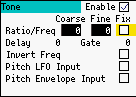 周波数は、基音からの相対音程もしくは固定の周波数を設定します。