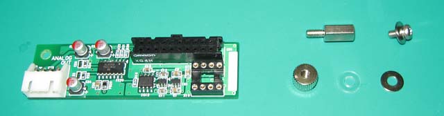 ①DAC基板に金属平ワッシャー、六角支柱、ワッシャー付きネジを取り付けます。