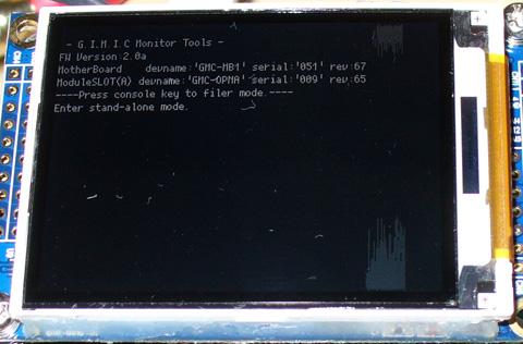 ①お試しファームを書き込んだGIMICの電源を入れると液晶に以下のような表示が行われます。*1