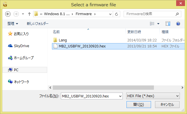 9. A file-open dialog will be shown to select the firmware file. Select the .hex file you have put in your GimicUpdater folder in an earlier step of this instruction, and click "Open".