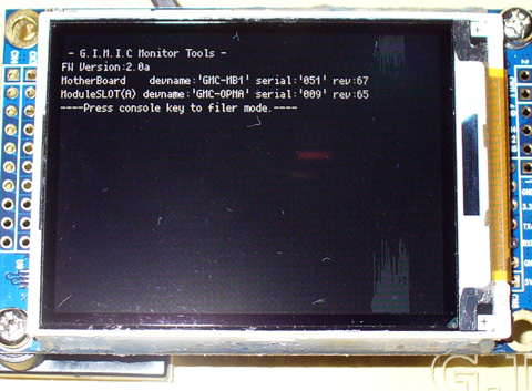 ①スタンドアロンFWを書き込んだGIMICの電源を入れると液晶に以下のような表示が行われます。*1