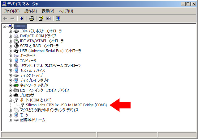 COMポートの何番に割り当てられているか確認してください(添付画像ではCOM3として認識しています)
