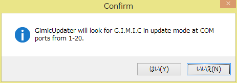 5. When the confirmation dialog appears, click "Yes". COM ports from 1-20 will be searched to locate the G.I.M.I.C.