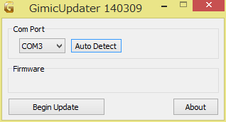 4. Run GimicUpdater.exe to open its main window, shown below. Make sure that your G.I.M.I.C is connected to the PC, then click "Auto Detect".
