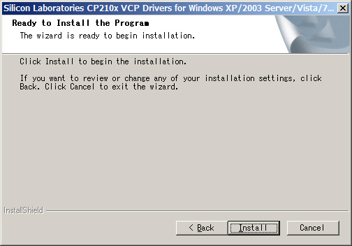 ⑥USB to UART Bridge Driverのインストーラが起動するのでInstallをクリック。