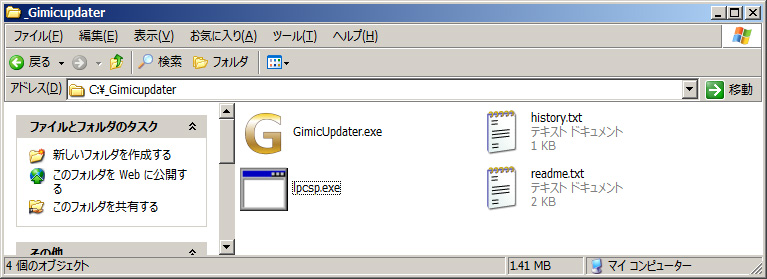 ①先ほどダウンロードしたgimicupdater_YYMMDD(日付).zipを解凍してください。