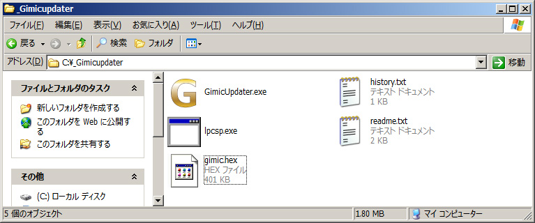 ③hexファイルをGimicUpdaterがあるフォルダに移動します。