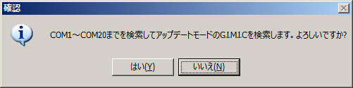 ⑤以下のダイアログが表示されるので「はい」をクリックして下さい。COM1〜COM20を調査してGIMICを見つけ出します。